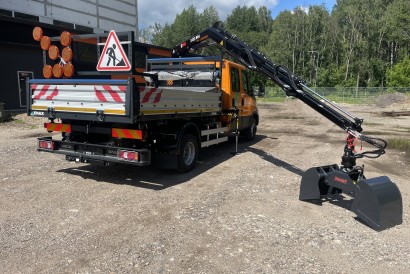 Kelių priežiūros darbams atlikti perduoti lengvi, kompaktiški savivarčiai Iveco Daily su universaliais HIAB X-CLX 044 B-2 hidraulinais manipuliatoriais. Automobiliai taip pat aprūpinti reikiama saugos darbui kelyje įranga.
